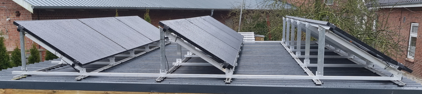 K2 Montagesysteme für Flachdächer sind für viele Oberflächen wie Beton, Bitumen, Folien, begrünte Dächer, Kies oder auch Trapezblech geeignet. Es sind sowohl einseitige als auch doppelseitige Aufständerungen möglich. Die Aufständerungswinkel erstrecken sich von 0-45°.